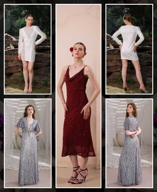 Powder Blue Hand-Beaded Dress with Sheer Cape